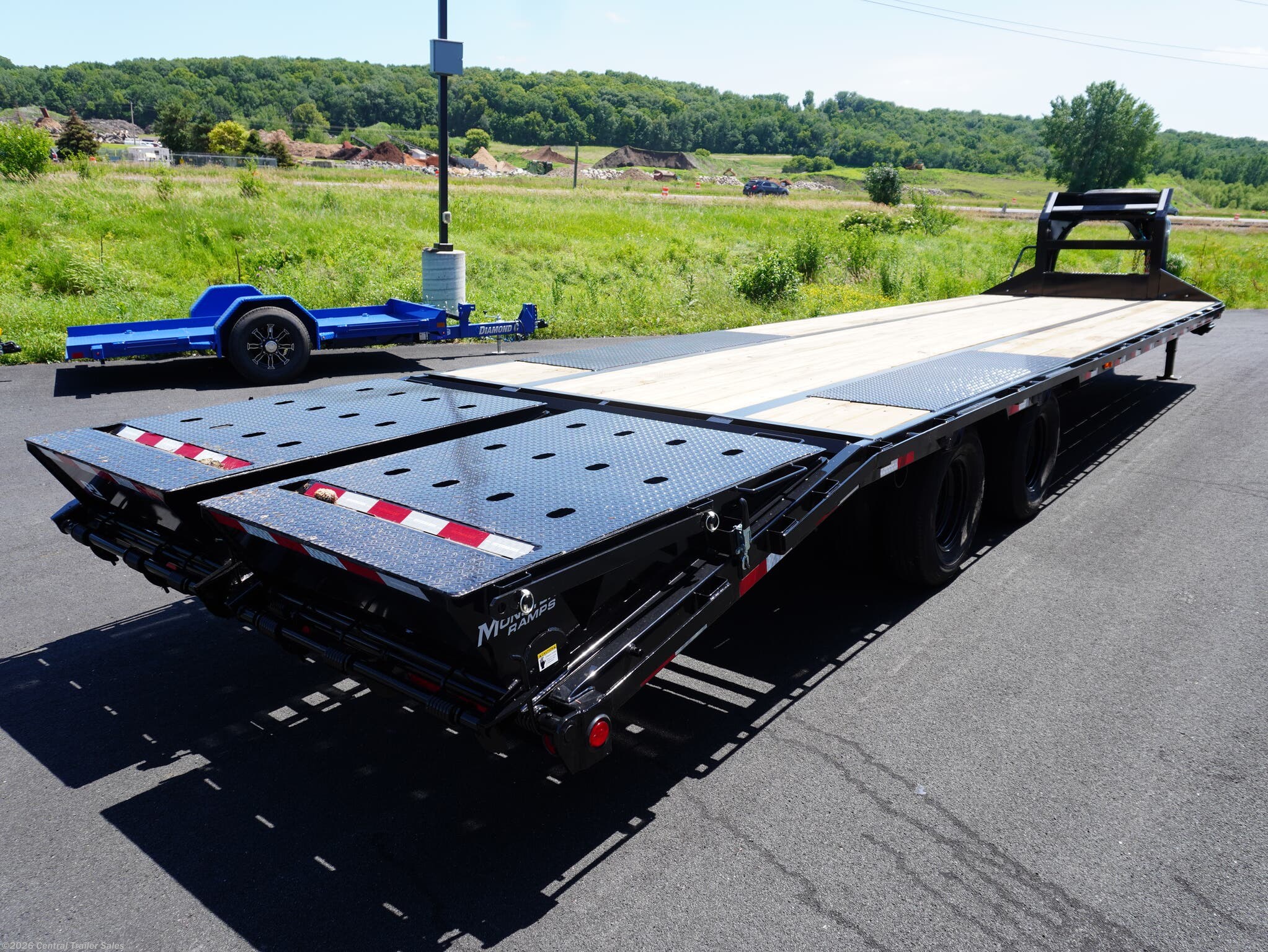 PJ LD 102"x32ft Low-Pro Flatdeck with Duals, 10,000# Axles, 27ft Straight Deck plus 5ft Dovetail and Monster Ramps